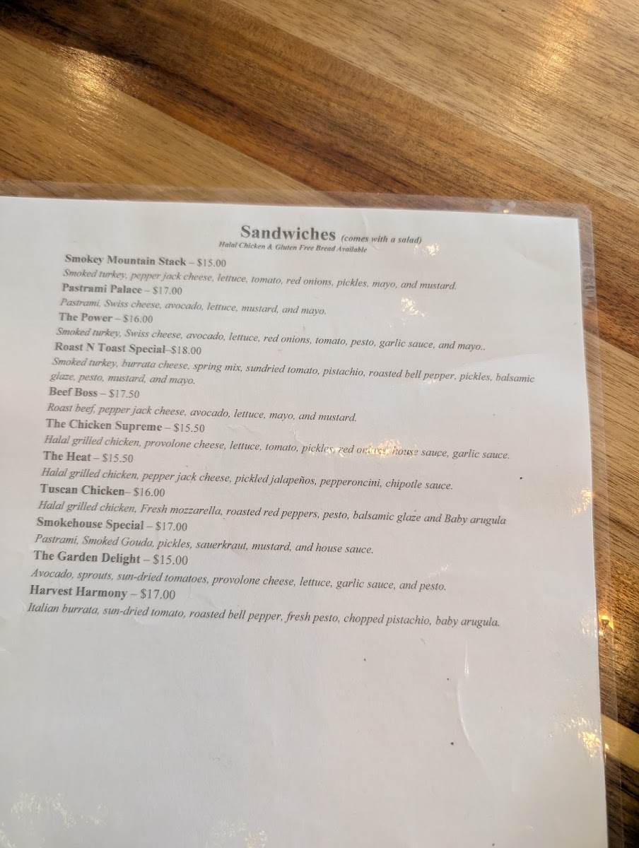Smoked turkey, burrata cheese, spring mix, sundried tomato, pistachio, roasted bell pepper, pickles, balsamic glaze, pesto, mustard, and mayo.